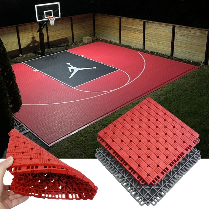 FIBA 3X3 Certified Interlocking Court Tiles designed for all weather conditions. Ideal for various sports including roller skating, basketball, tennis, football, badminton, volleyball, and pickleball.